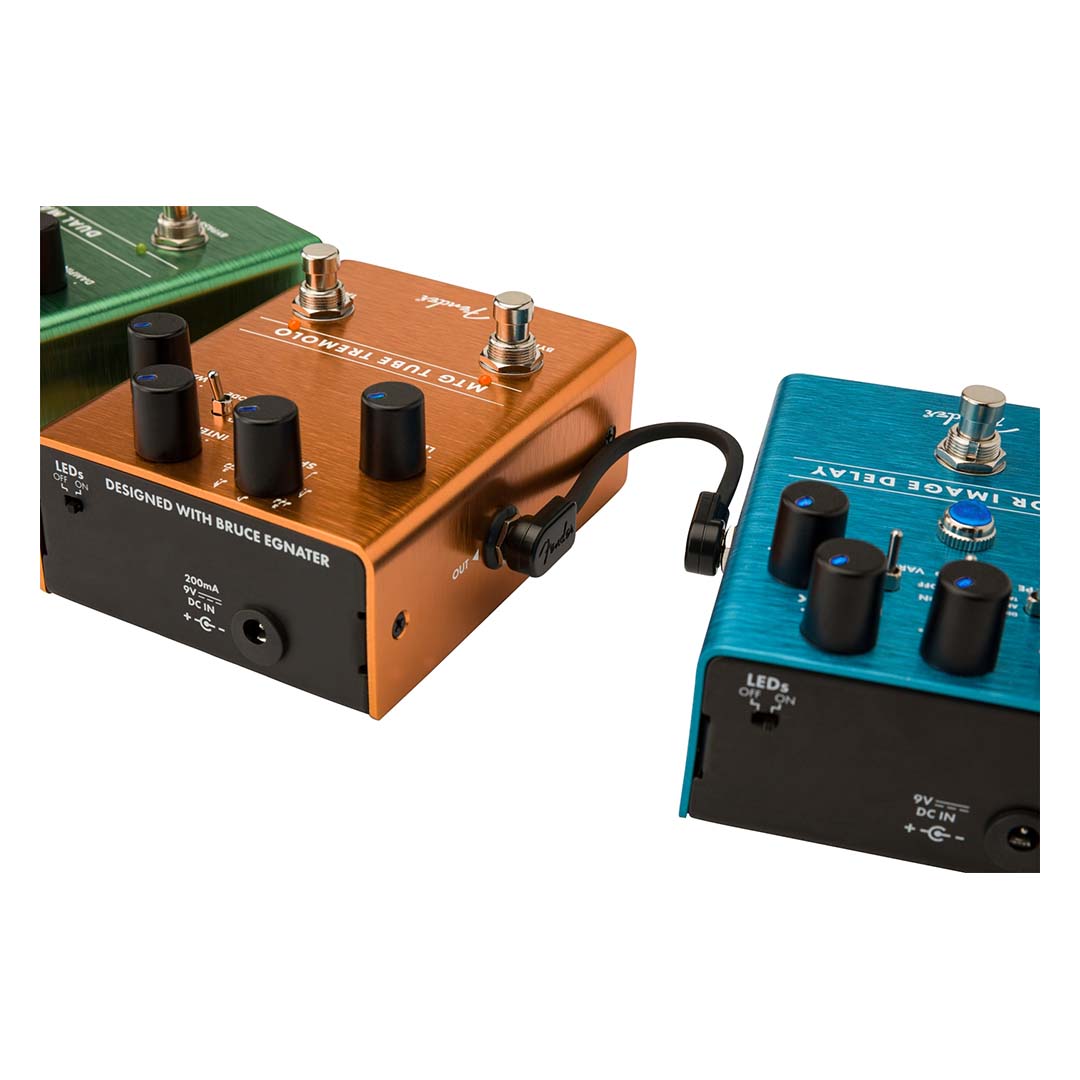 A curated collection of custom-designed patch cables, the Fender Blockchain™ cable kits are a one-stop shop for your stompbox needs. The innovative and malleable cubed PVC jacket allows for clean wiring of your pedals on any size board while minimizing signal chain loss and retaining your tone. The low-profile, pancake style connectors are designed to maximize real estate and enhance your pedal board’s curb appeal. Fender Blockchain™ cable kits are an ideal solution for your patch cable needs and are selectively sized for your setup.Designed for compatibility with any size pedal board, including the Fender Professional Pedal Boards, the Fender Blockchain™ cable kits are offered in four multi-length combinations that can be mixed and matched to suit your signal chain needs.