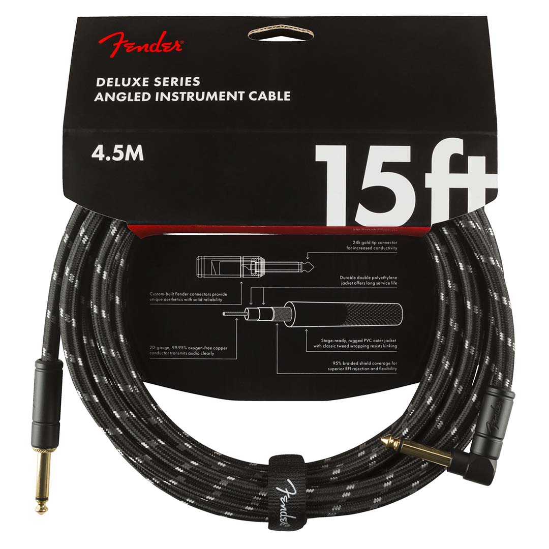 Deluxe Series Instrument Cable, Straight/Angle, 15′ Black Tweed