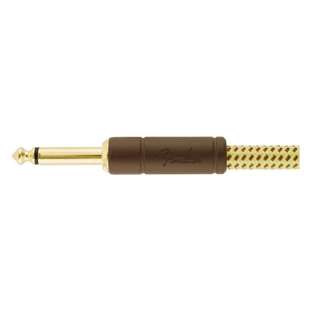 Fender Deluxe Series cables carry the highest quality materials and braided shielding to deliver flagship durability, conductance and transparency. Our top-of-the-line cables sport custom molded ends with strain relief under the housing – plus 24K gold-plated connectors that won’t tarnish or degrade your sound over time. These cables use a very quiet braided shielding that is engineered to maximize the purity of your tone, and they’re protected by a soft-woven yet rugged tweed jacket that provides ultimate protection with classic Fender style.