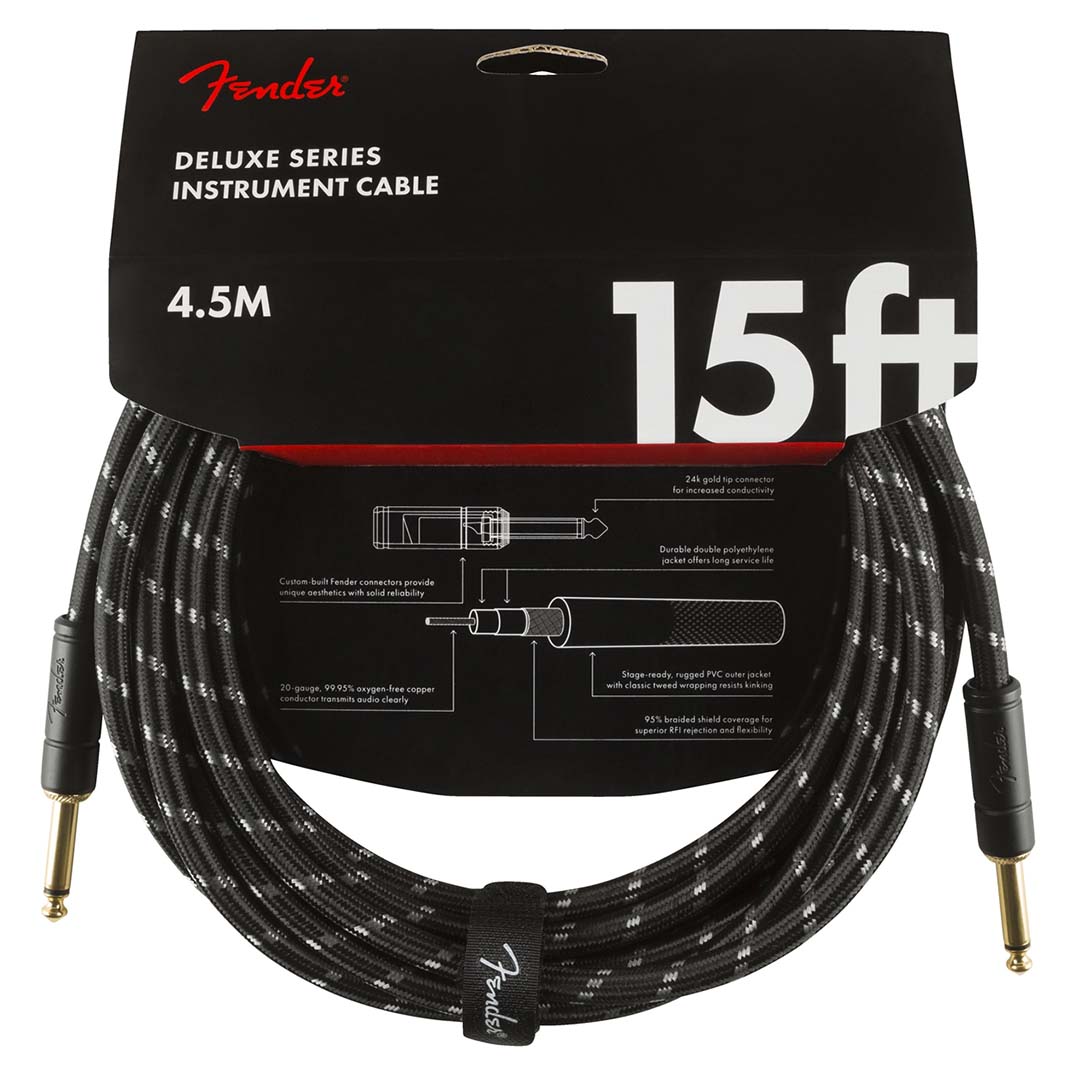 Deluxe Series Instrument Cable, Straight/Straight, 15′, Black Tweed
