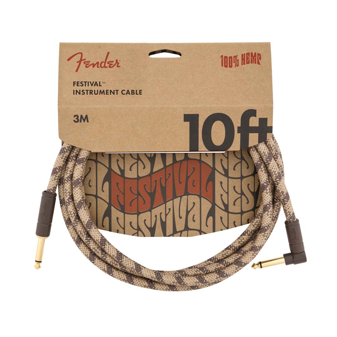 Festival Instrument Cable, Straight/Angle, 10′, Pure Hemp, Brown Stripe