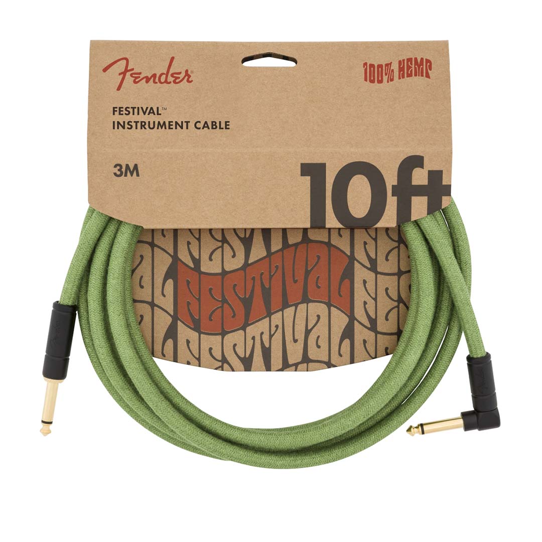 Festival Instrument Cable, Straight/Angle, 10′, Pure Hemp, Green