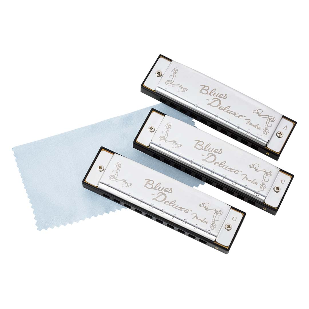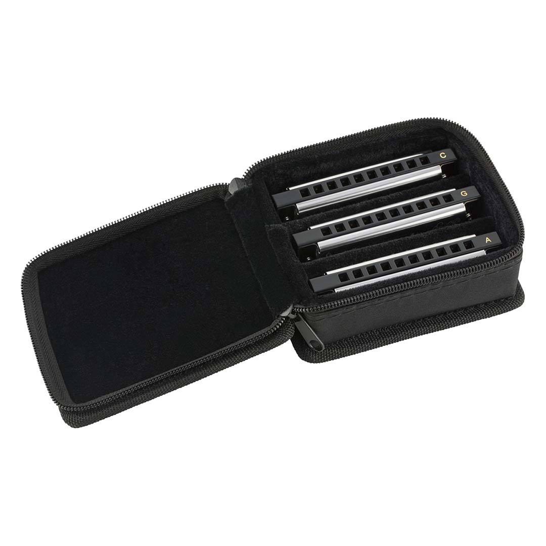 Blues Deluxe Harmonica, Pack of 3, with Case