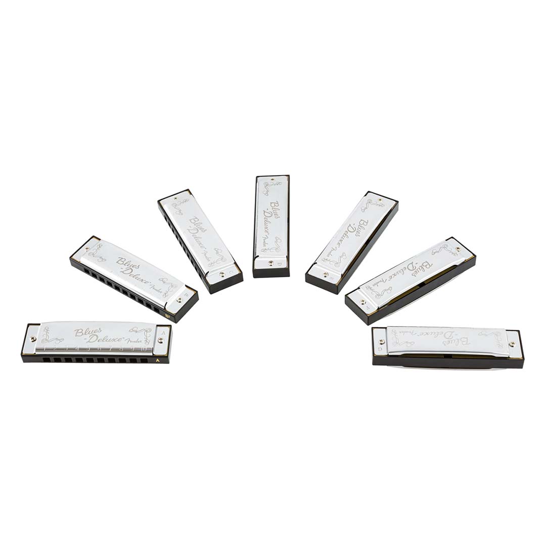 Blues Deluxe Harmonica, Pack of 7, with Case
