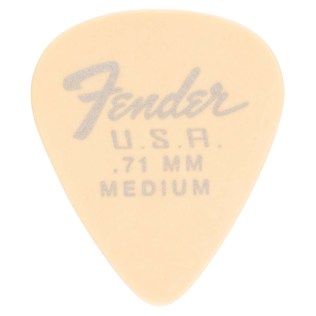 Add some color to your sound with this 351-shaped Delrin pick.This durable pick is crafted from extruded Delrin, in several classic Fender colors, with a matte finish for improved grip. Long-lasting and durable, Delrin has a stiffer feel than celluloid, which gives a strong, well-defined attack to every stroke. The 351 shape – our most popular – works well for any musical genre and has a traditional feel. Connecting to our past, these picks are available in the gauges we used in the late-’70s.