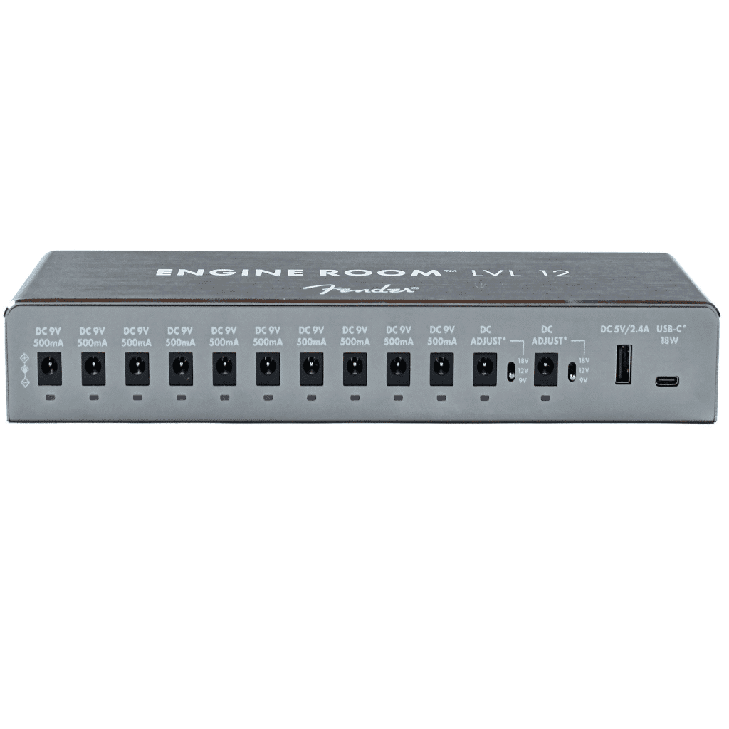The Engine Room® Power Supply was designed by our in-house team of experts in Southern California. The chassis is crafted from lightweight, durable anodized aluminum, and its sleek, low-profile appearance is engineered to accommodate most pedalboards. Road-tested and ready for live or studio use, Fender’s Engine Room® Power Supply is built to power your performance.