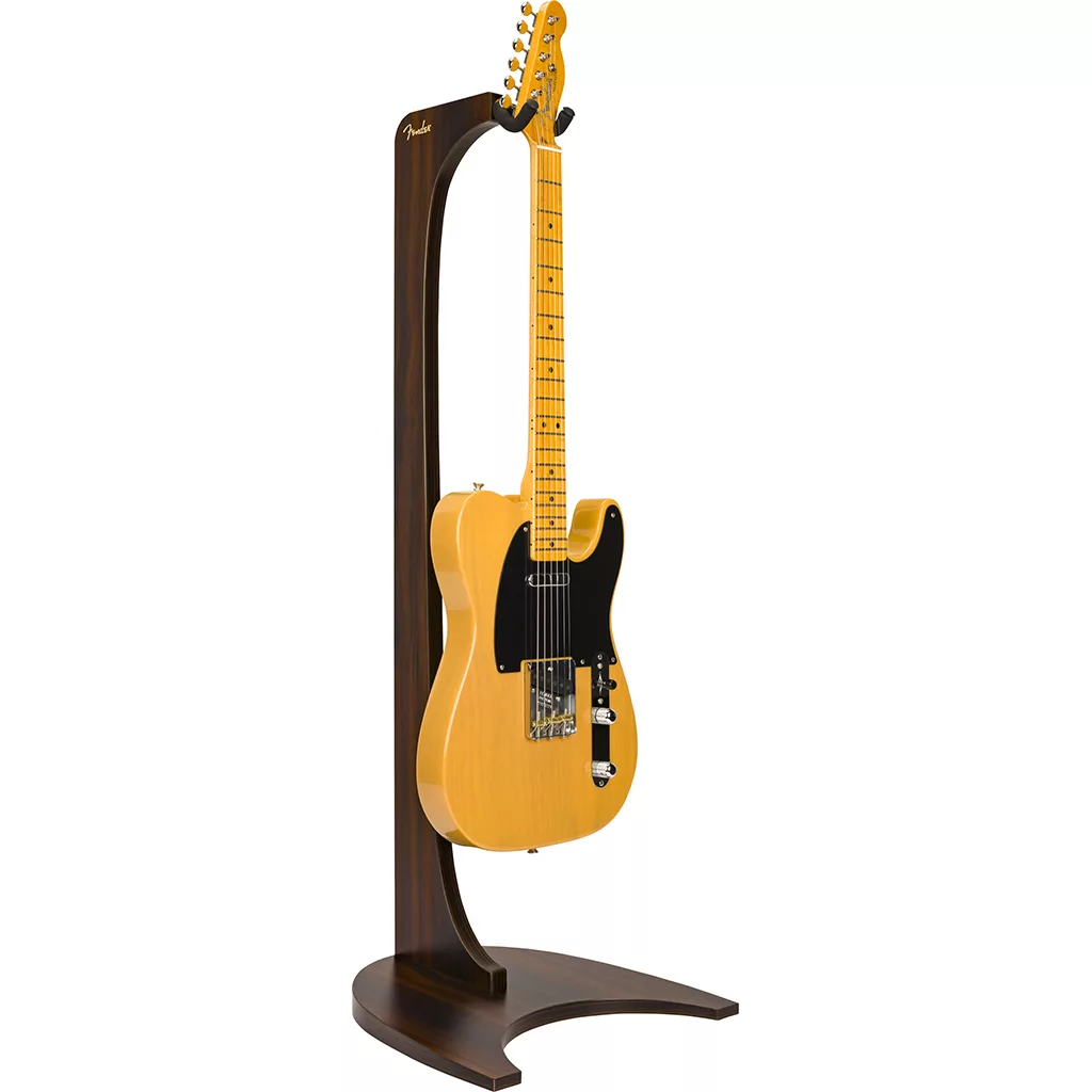 The Fender Deluxe Wooden Hanging Guitar Stand features an eye-catching, mid-century modern design to safely display your instrument. Designed from the ground up with an ultra-stable weighted base, this hanging guitar stand is as sleek as it is secure.