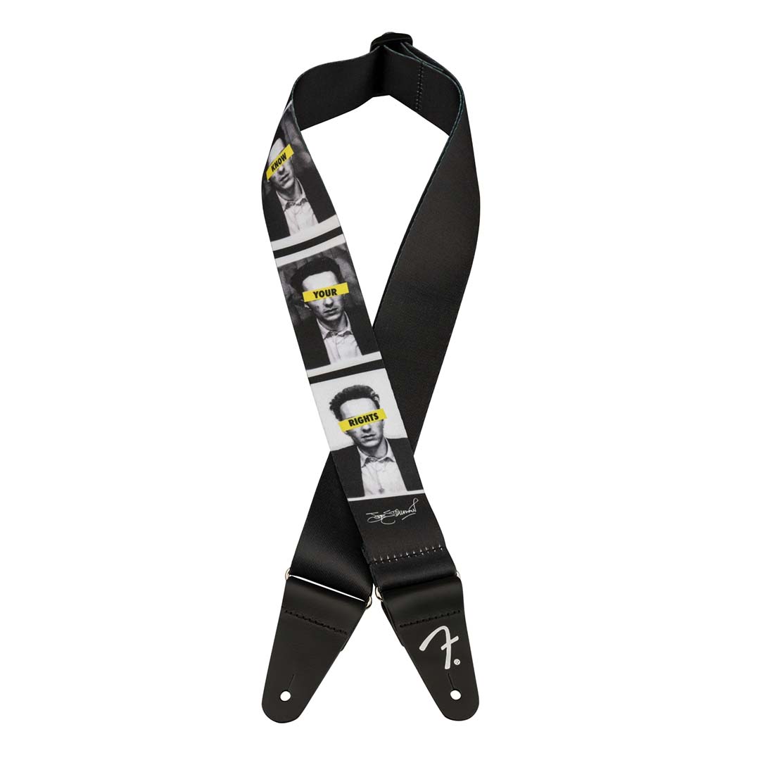 The Legendary Joe Strummer’s music helped shape a movement. As a guitarist his rhythm playing was unrelenting and had a raw passion that went into every chord he struck. If he played it, he meant it. Strummer is an icon. A crucial component in establishing punk music as more than just dyed hair and safety pins, Strummer is best known for his work with The Clash, “the only band that matters”. Together with his bandmates, Strummer was a major part of creating and redefining punk rock as a timeless genre that has continued to inspire countless other bands to this day.The Know Your Rights polyester strap pays homage to one of Joe’s most poignant and powerful lyrics. Mirroring the artwork from his new album ASSEMBLY, this fully adjustable strap features iconic images of the legend himself that will inspire you to pick up your guitar and play!