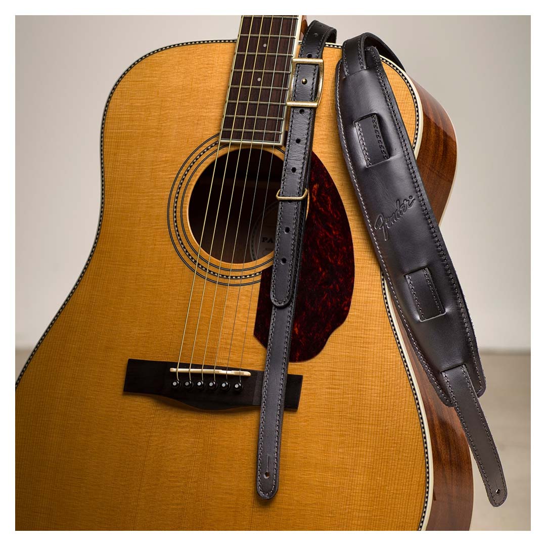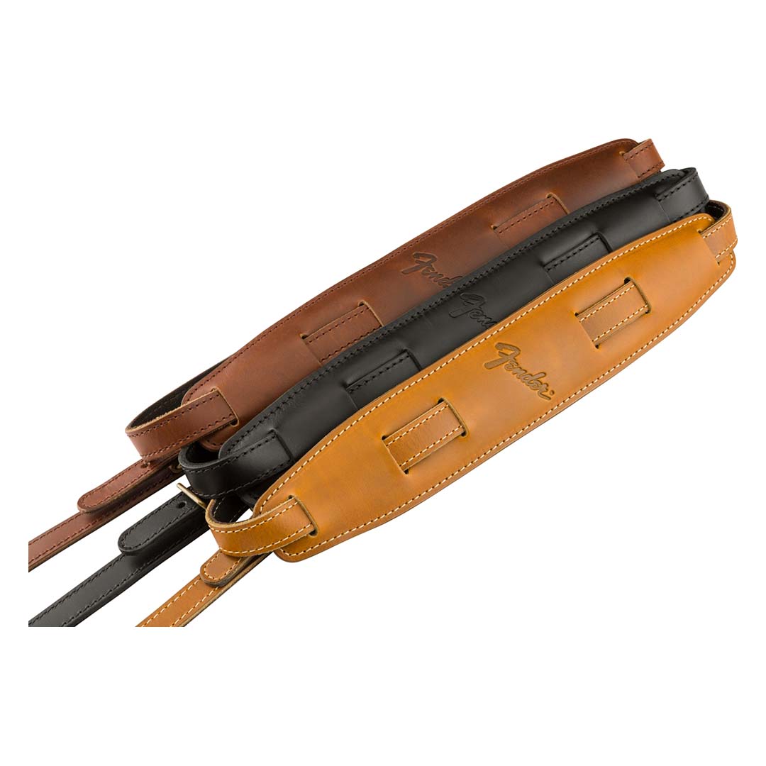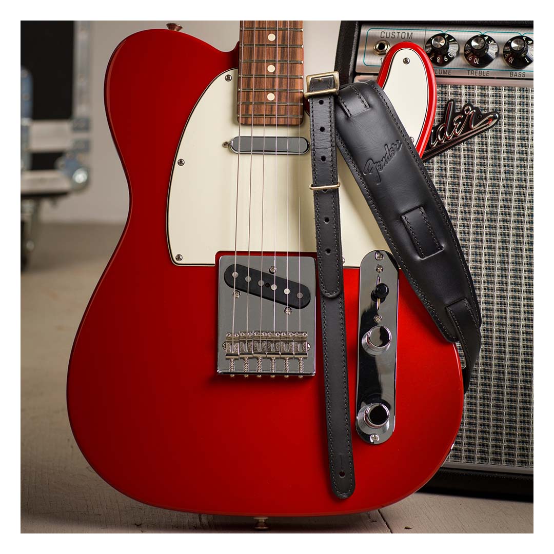 Featuring smooth, premium top leather with a soft padded leather backing, the Mustang™ saddle strap is a modern interpretation of our classic vintage Fender design. Full-grain, rich leather undertones ensure this strap only gets better with time while the fixed brass metal keeper secures your straps tail so it doesn’t hang once adjusted. Available in both standard and long lengths to fit players of any stature. Standard version: 40.5″-56″ length range. Long version: 47″-62″.