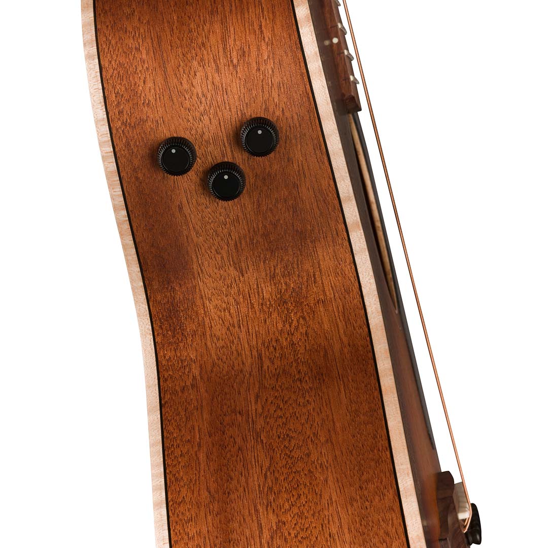 With a sleek, streamlined look and a pure acoustic voice, the onboard Fishman® Flex Body electronic system features intuitive controls for volume, tone and a blend knob for combining the undersaddle piezo pickup and body transducer to dial-in the most faithful amplified reproduction of the guitar’s natural acoustic tone.