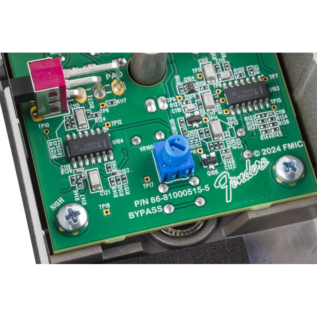 Conjure varying shades of gain, from light tube-like breakup to hi-gain chunk, while keeping your low end intact. Utilizing a complement of JFET circuitry and dynamic clipping stages, the Bassman Driver emulates the behavior of a bass tube amp driven to breakup. Flick the voice switch into the up position to kick in an additional layer of clipping for a heavy modern distortion voicing. Sculpt your tone further using the mids switch, offering two dialed-in levels of growl, and an internal tone control to set the high frequency content to your liking. The blend control keeps your low end solid by blending body and dynamics from your clean tone back into the mix.
