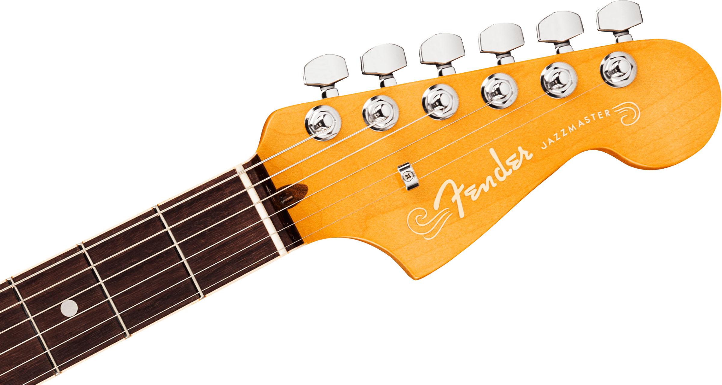 American Ultra is our most advanced series of guitars and basses for discerning players who demand the ultimate in precision, performance and tone. The American Ultra Jazzmaster features a unique “Modern D” neck profile for hours of playing comfort, and the tapered neck heel allows easy access to the highest register. A speedy 10″-14″ compound-radius fingerboard with 21 medium-jumbo frets means effortless and accurate soloing, while the Ultra Noiseless™ Vintage pickups and advanced wiring options provide endless tonal possibilities – without hum. This versatile, state-of-the-art instrument will inspire you to push your playing to new heights.Other features include sealed locking tuning machines, chrome hardware and bone nut. Includes premium molded hardshell case.