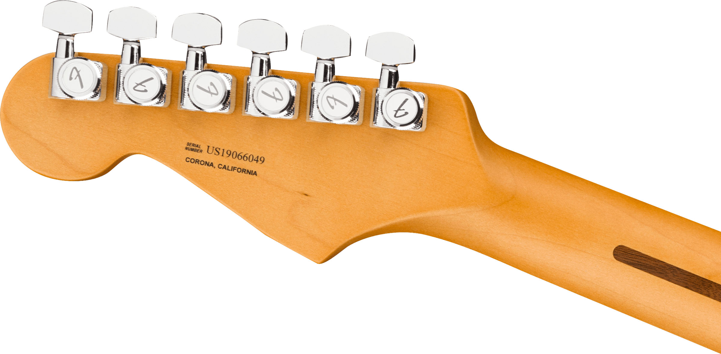 American Ultra is our most advanced series of guitars and basses for discerning players who demand the ultimate in precision, performance and tone. The American Ultra Stratocaster HSS features a unique “Modern D” neck profile with Ultra rolled fingerboard edges for hours of playing comfort, and the tapered neck heel allows easy access to the highest register. A speedy 10″-14″ compound-radius fingerboard with 22 medium-jumbo frets means effortless and accurate soloing, while the Ultra Noiseless™ Hot single-coil pickups and Ultra Double Tap™ humbucking pickup, along with advanced wiring options, provide endless tonal possibilities – without hum. The sculpted rear body contours are as beautiful as they are functional. This versatile, state-of-the-art instrument will inspire you to push your playing to new heights.Other features include sealed locking tuning machines, chrome hardware and bone nut. Includes premium molded hardshell case.