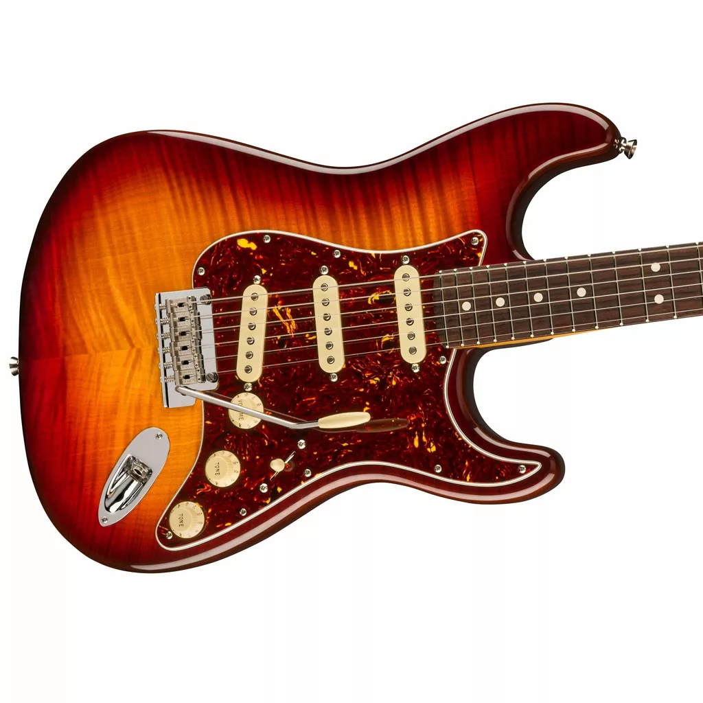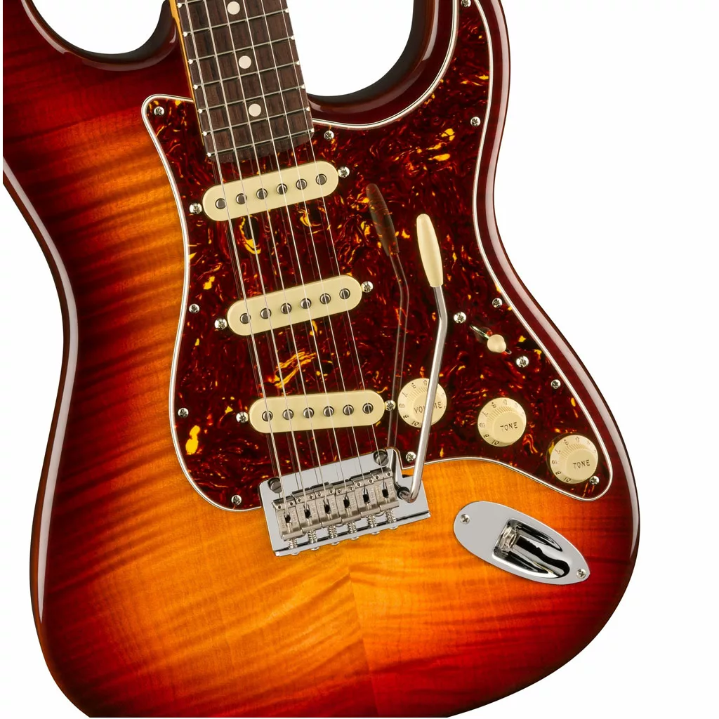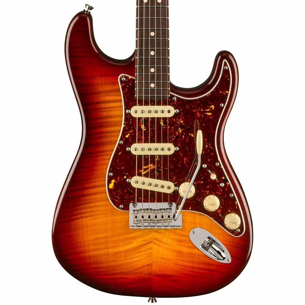 Alder is a classic Fender tonewood with a balanced sound perfect for almost any genre. The Flame Maple Top and Comet Burst finish exude elegance.