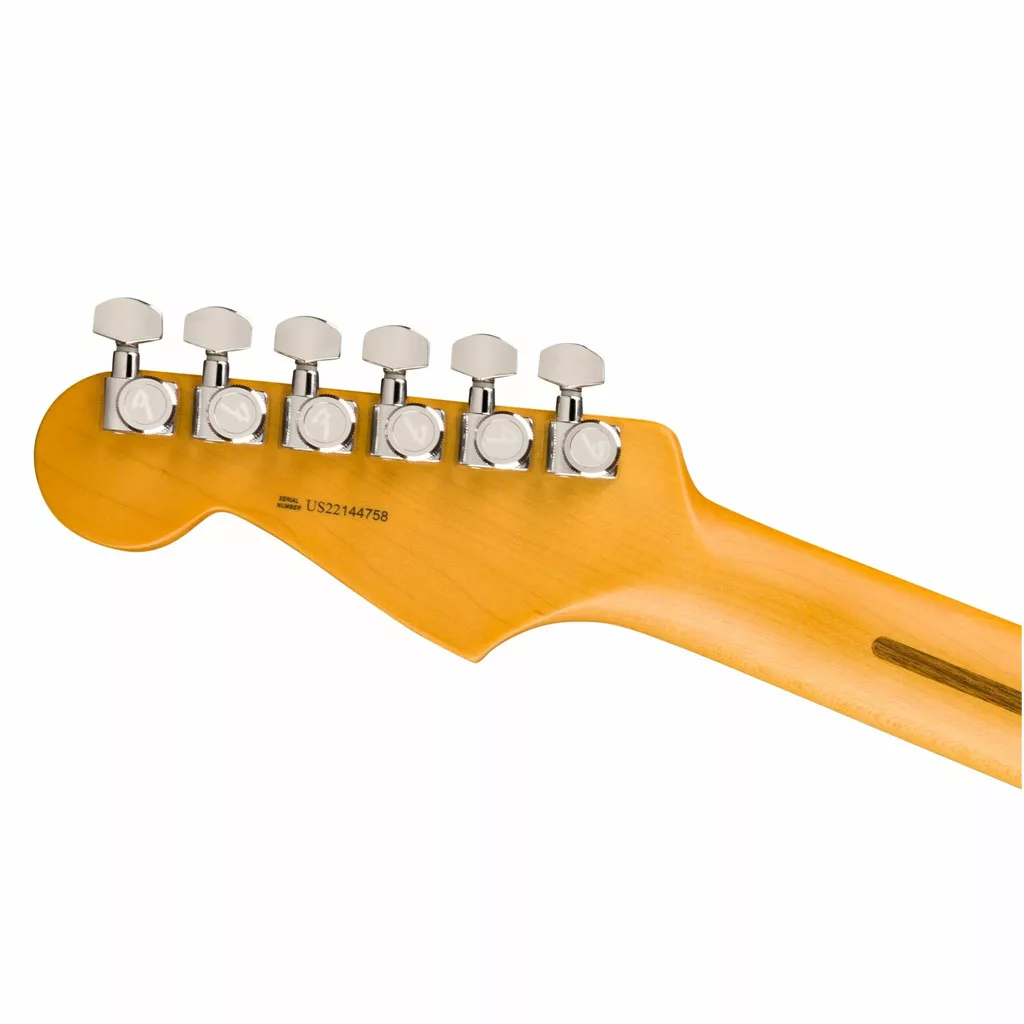 Equipped with 70th Anniversary V-Mod II Single-Coil Strat® pickups, this guitar delivers dynamic and expressive tones. The Deep “C” neck features smooth rolled fingerboard edges, “Super-Natural” satin finish and sculpted neck heel for a supremely comfortable feel and easy access to the upper register. An upgraded 2-point tremolo with a cold-rolled steel block increases sustain, clarity and high-end sparkle. Deluxe locking tuners ensure exceptional tuning stability. The American Pro II Stratocaster delivers instant familiarity and sonic versatility you’ll feel and hear right away, with broad ranging appointments that add up to nothing less than a new standard for professional instruments. The Inca Silver ABS molded case provides reliable protection for your prized instrument.