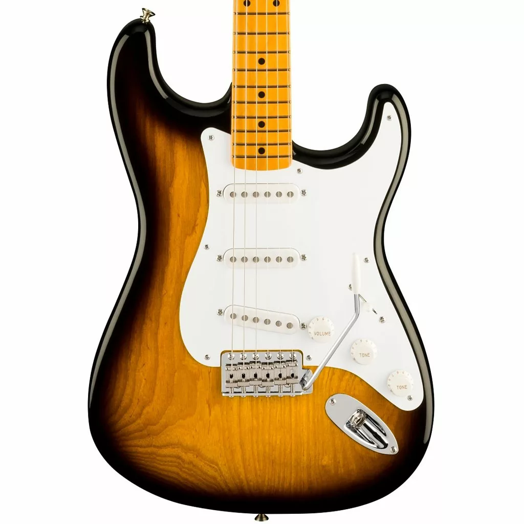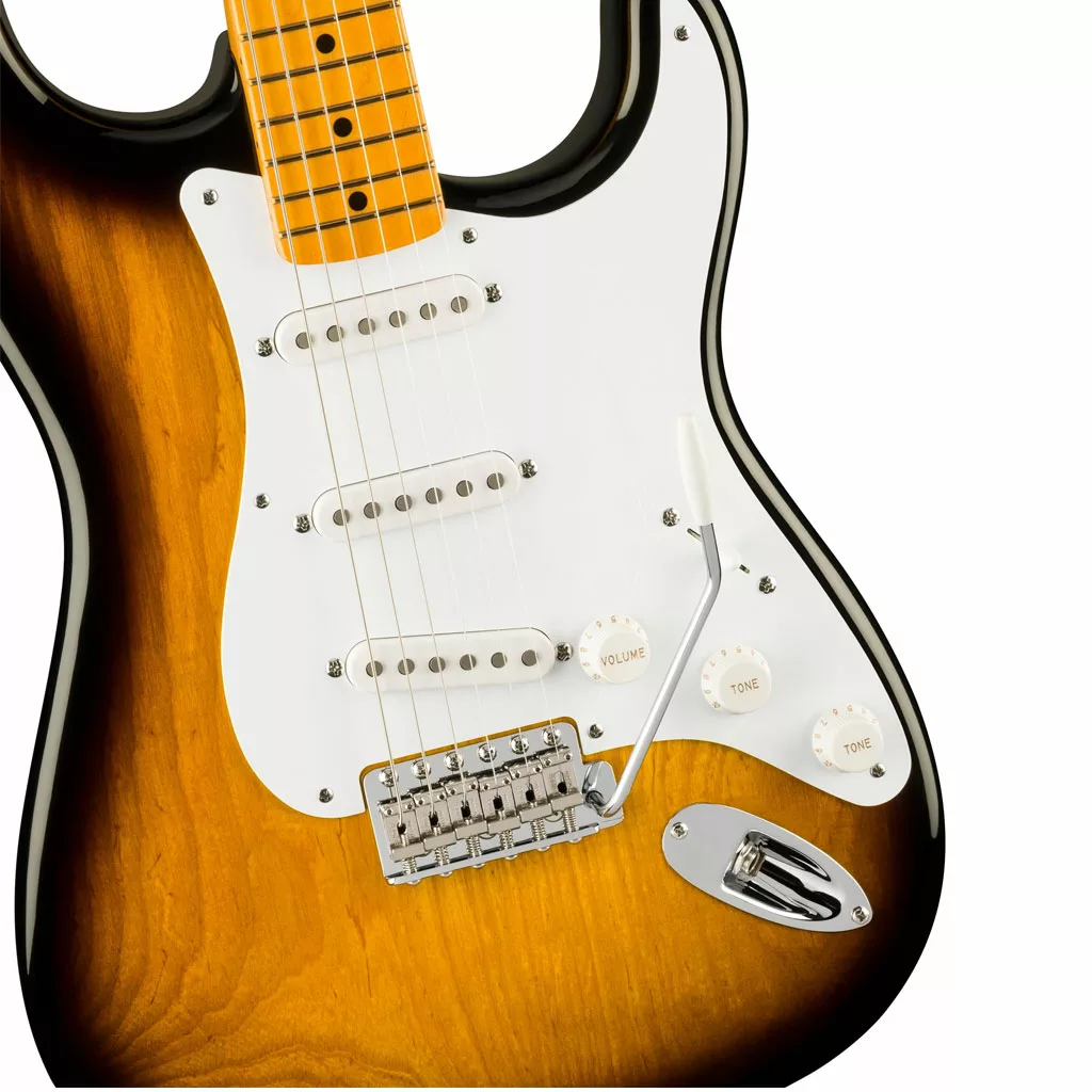 Specially voiced to reproduce the authentic sound of a vintage 1954 Stratocaster, the 70th Anniversary 1954 Single-Coil Strat® pickups are full of the woody warmth and bell-like, crystalline tone that made Fender instruments famous.