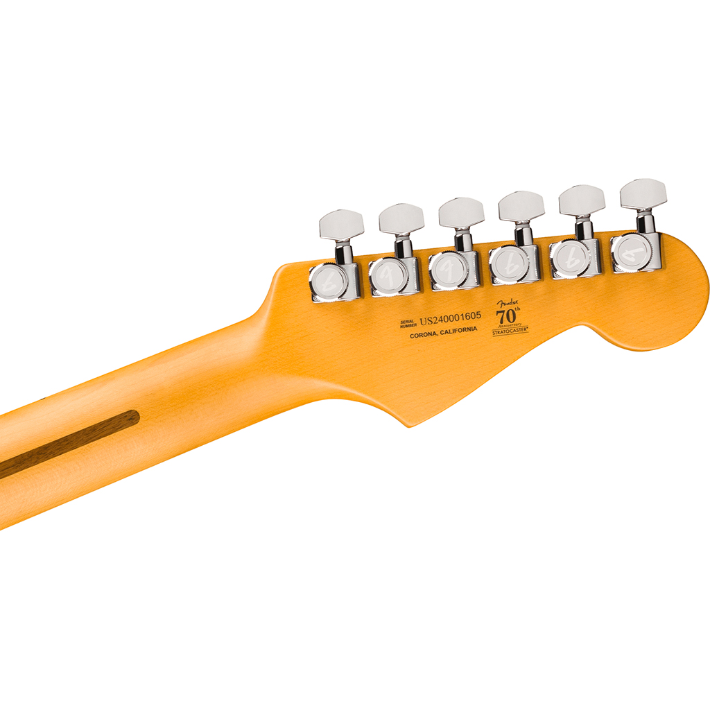 Under the hood, a trio of Ultra II Noiseless™ Vintage Strat® pickups deliver everything from sweet crystalline cleans to searing leads, all without a hint of hum. Our patented S-1™ switch cleverly unlocks additional pickup configurations for even more tonal variety. Additional road-ready features include 2-Point American Ultra synchronized tremolo with pop-in arm, polished stainless steel block saddles, cold rolled steel block, deluxe locking tuners, soft-touch knobs and 1-ply anodized aluminum pickguard.
