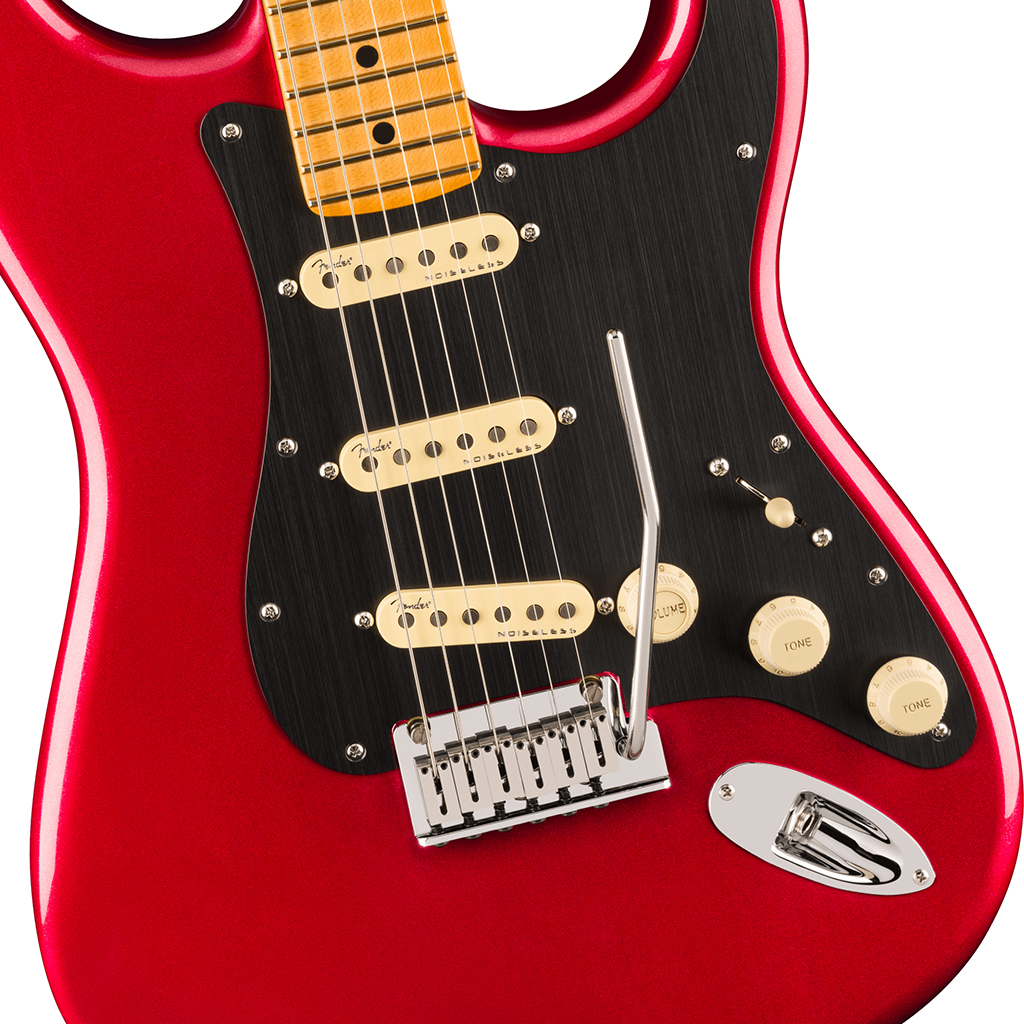Under the hood, a trio of Ultra II Noiseless™ Vintage Strat® pickups deliver everything from sweet crystalline cleans to searing leads, all without a hint of hum. Our patented S-1™ switch cleverly unlocks additional pickup configurations for even more tonal variety. Additional road-ready features include 2-Point American Ultra synchronized tremolo with pop-in arm, polished stainless steel block saddles, cold rolled steel block, deluxe locking tuners, soft-touch knobs and 1-ply anodized aluminum pickguard.