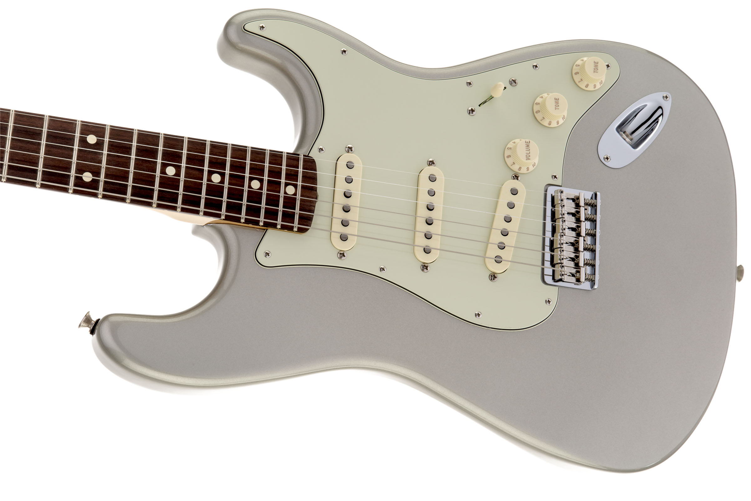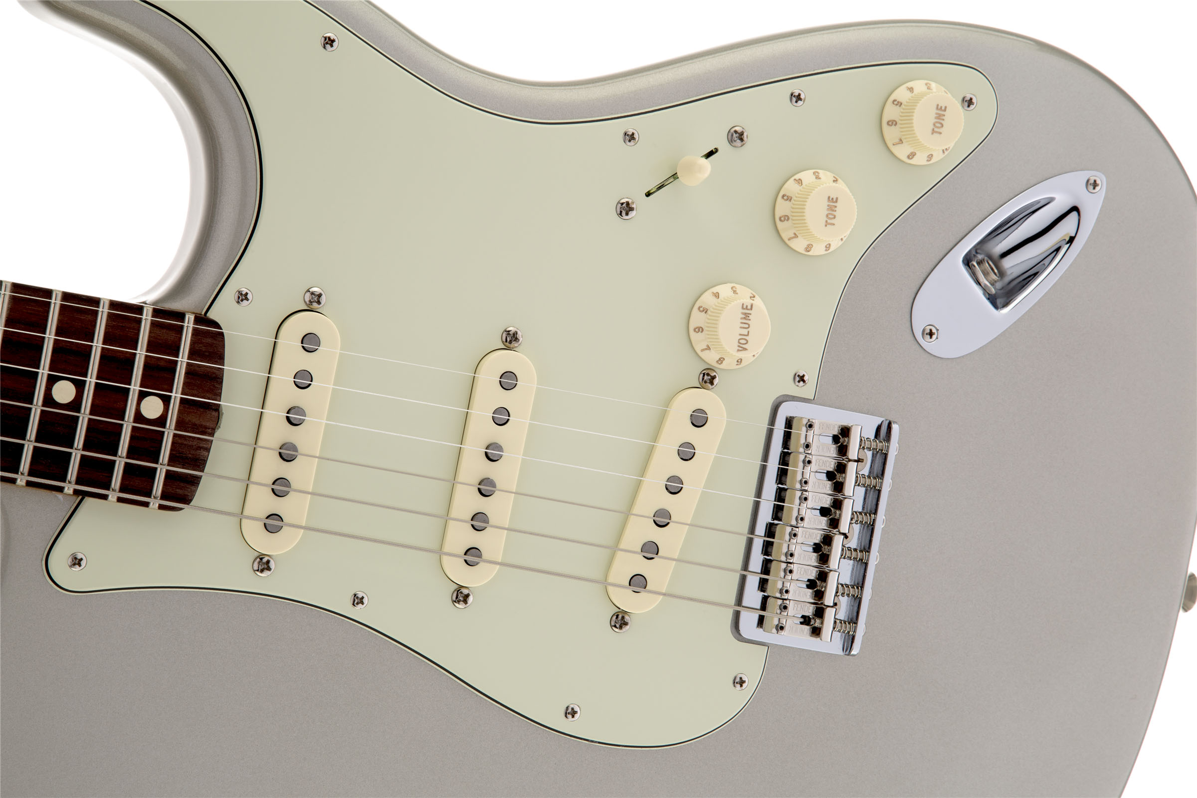 For a classic look and superior intonation and tuning stability, this guitar features a string-through-body American Vintage hard-tail Stratocaster bridge.