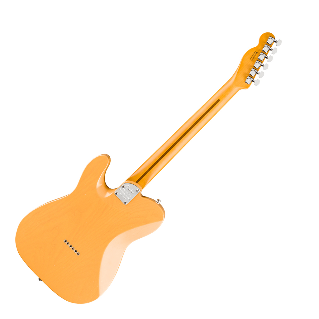 Under the hood, Pure Vintage ’51 Tele® pickups deliver classic Fender tones, from sparkling cleans to rich, expressive leads. Performance hardware includes a precision-engineered 6-saddle string-through-body bridge with brass block saddles and deluxe locking short post tuners for quick string changes and superior tuning stability.