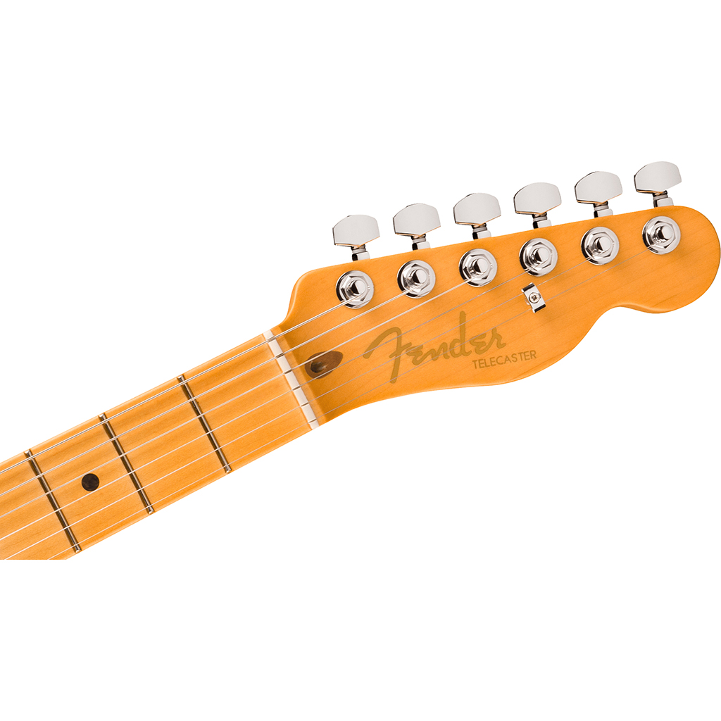 The Fender® American Ultra II Telecaster® features a select alder body with sculpted body contours. For effortless playability, the quartersawn maple neck features our Modern D profile and smooth Ultra Satin finish. Ebony or quartersawn maple 10”-14” compound radius fingerboards feature Ultra rolled edges, medium-jumbo frets, Luminlay® side dots and Graph Tech® TUSQ® nuts. The tapered neck heel and sculpted body contours allow unparalleled access to the higher register.