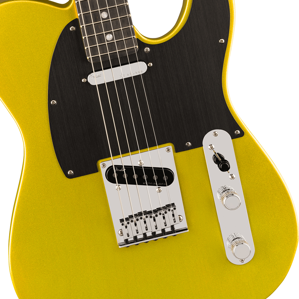 Under the hood, the Ultra II Noiseless™ Vintage Tele® pickups deliver sweet crystalline cleans, snappy twang and beefy growl, all without a hint of hum. Our patented S-1™ switch cleverly engages a series wiring option for even more tonal variety. Additional road-ready features include 6-saddle string-through-body bridge with chromed brass saddles, Deluxe locking tuners, knurled aluminum knobs and 1-ply anodized aluminum pickguard.