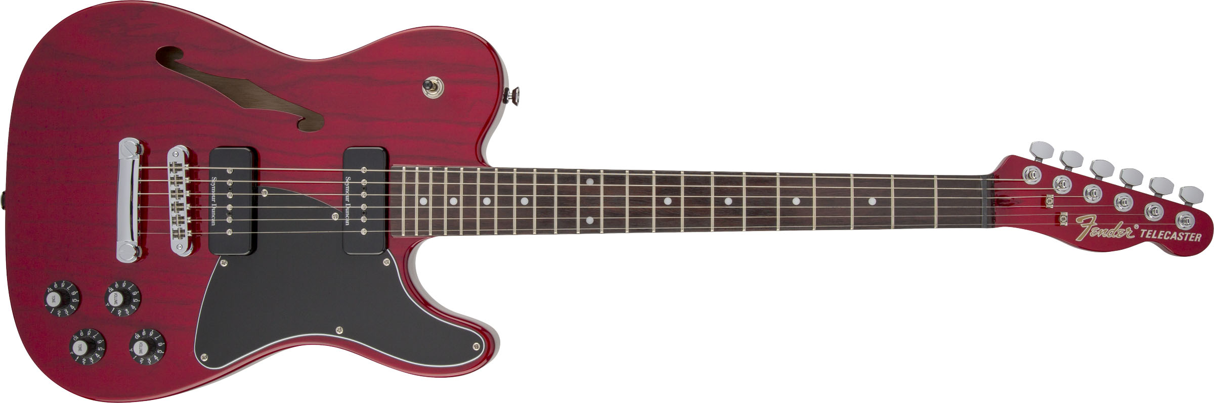 The Jim Adkins JA-90 Telecaster Thinline expertly evokes the late-’60s/early-’70s originals with a finely crafted semi-hollow ash body. Lightweight and stylish, it’s a classic Fender form with pronounced playing comfort and timeless semi-hollow tone.