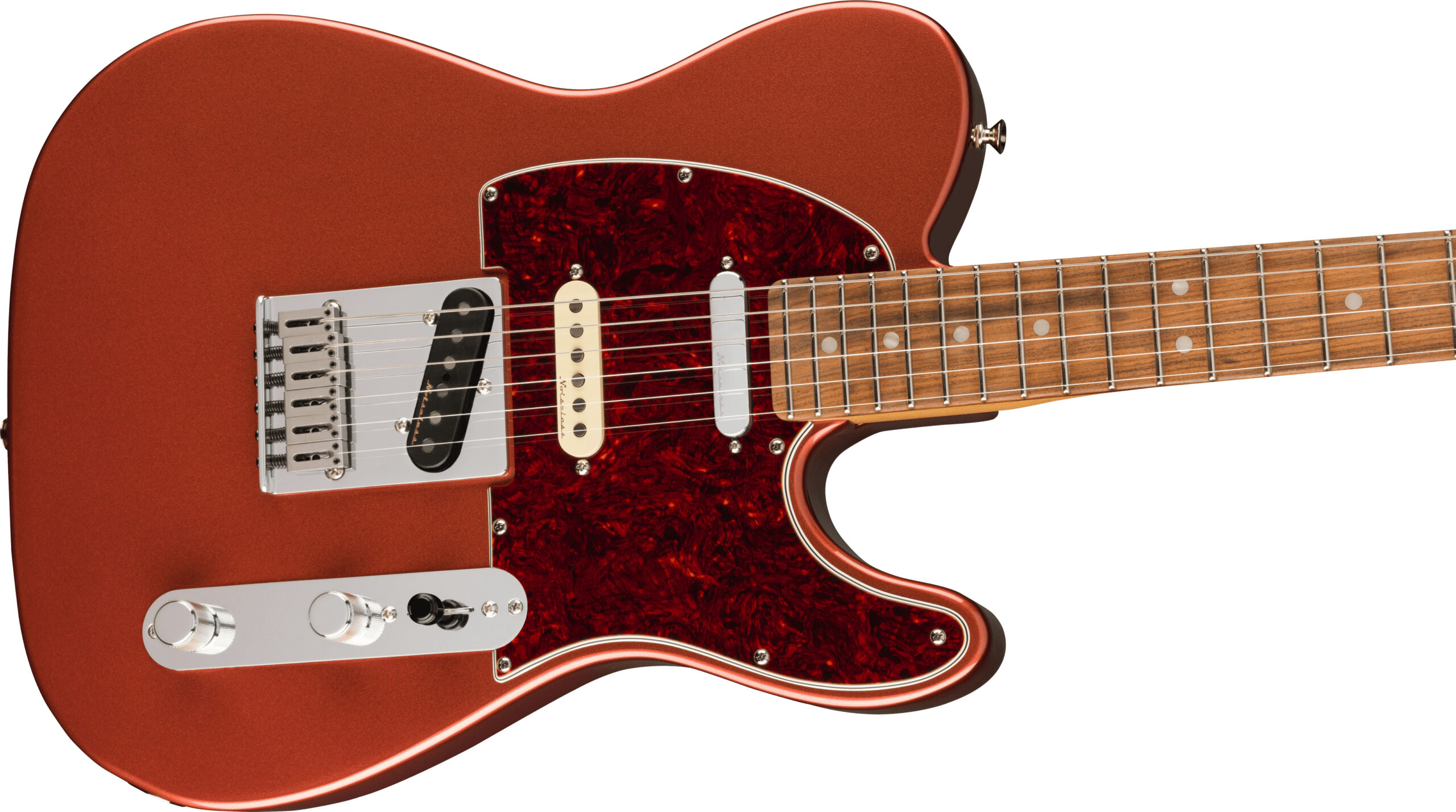 The modern Tele bridge with 6 steel block saddles delivers superior intonation, sustain, and a touch of brightness.
