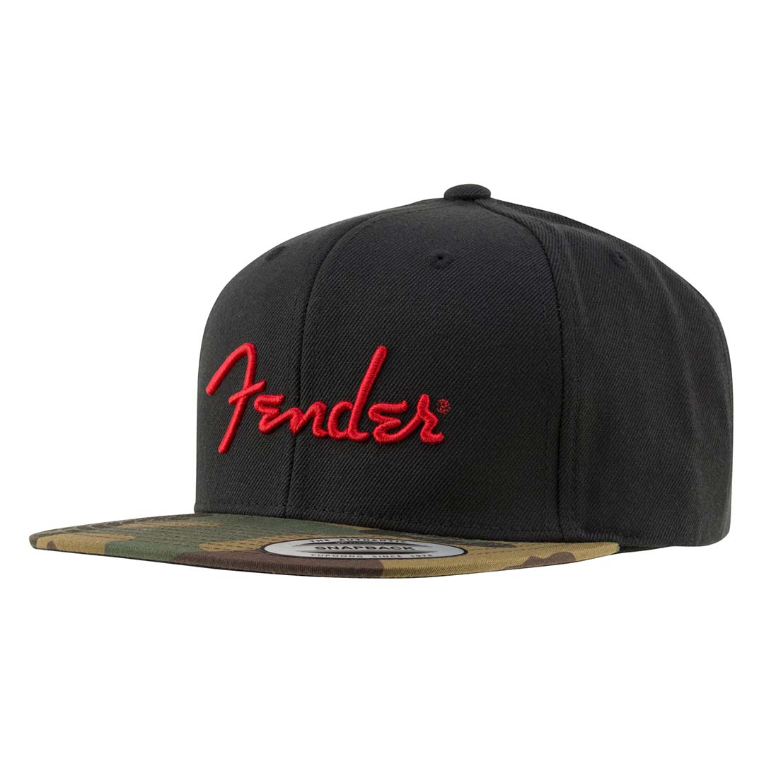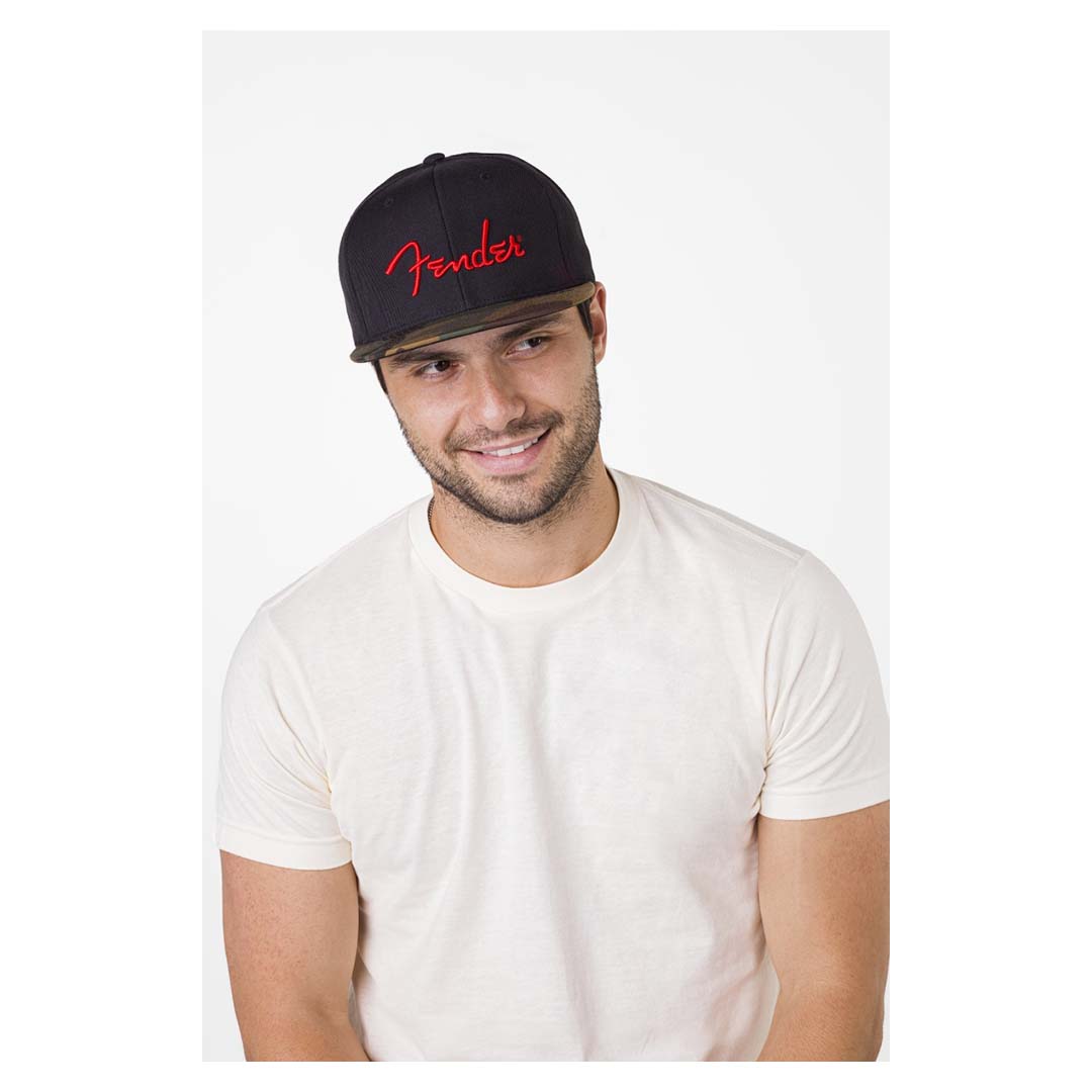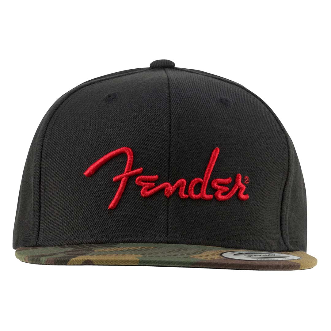 This flatbill cap is for the bold Fender fan. Featuring our “spaghetti” logo embroidered in red over black panels, this hat sports a cool camo bill.