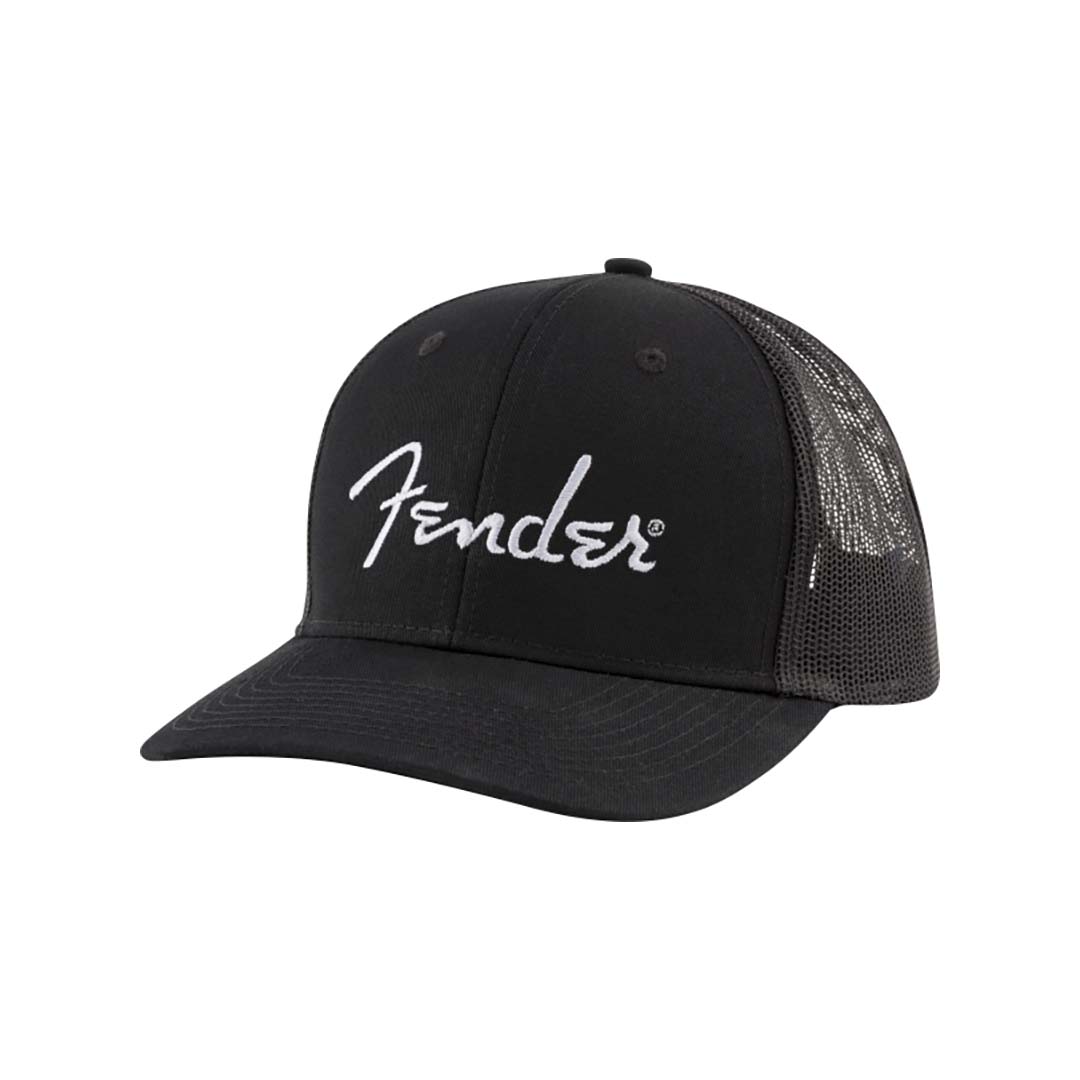 Fender® Silver Thread Logo Snapback Trucker Hat, Black, One Size Fits Most