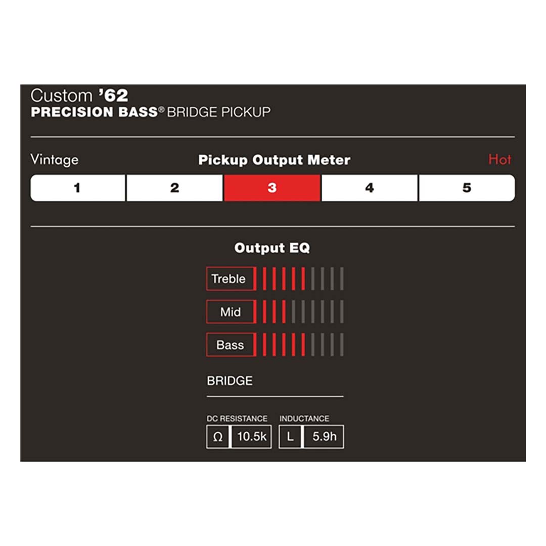 The Fender Custom Shop has artfully reproduced the classic 1962 Precision Bass split-coil pickup to deliver the full booming lows, punchy midrange and clear high end of the bass that started it all.