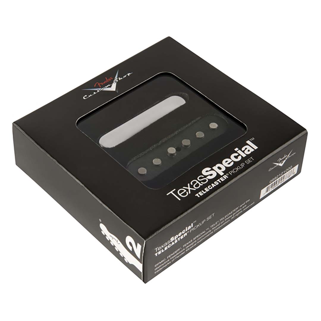 Custom Shop Texas Special Telecaster pickups are over-wound for increased output, and are made with alnico 5 magnets and enamel-coated magnet wire for outstanding presence and midrange. Nickel/silver neck pickup cover produces clear, warm Telecaster tone; bridge pickup features height-staggered polepieces and copper-plated steel bottom plate.