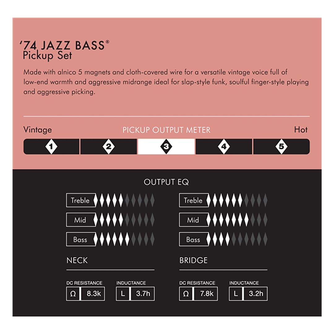 From vintage bobbin construction to genuine original-era cloth wiring, all Fender Pure Vintage pickups are wound to precise specifications for authentic, traditional Fender tone and performance. With a versatile vintage voice full of low-end warmth and their distinct midrange, Fender’s Pure Vintage ’74 single-coil Jazz Bass pickups are the ideal solution for the bass player who prefers slap-style funk, soulful fingerstyle playing and aggressive pickups.