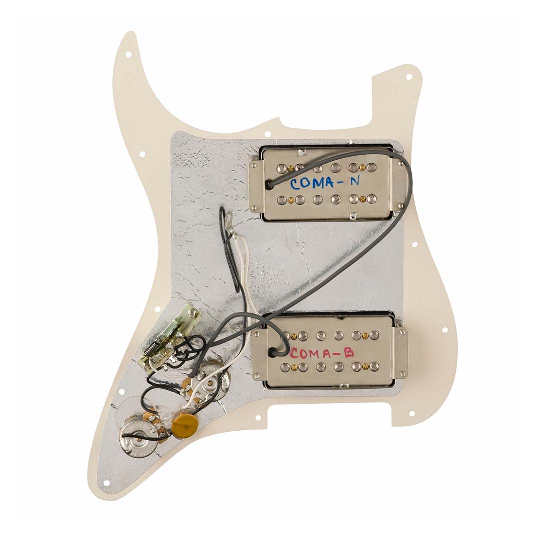Designed specifically to fit the Michael Landau Coma Stratocaster, this pre-wired pickguard features the Custom ML CuNiFe® Wide-Range Humbuckers. The custom-voiced Wide-Range CuNiFe humbucker bridge and neck pickups have a slightly hotter output while still retaining the “hi-fi” clarity that Wide Range humbuckers are known for. Both pickups are custom wound to the artists exacting specifications and are mounted in a brown shell pickguard that is slightly larger than standard and designed to fit perfectly on the signature Coma Stratocaster.