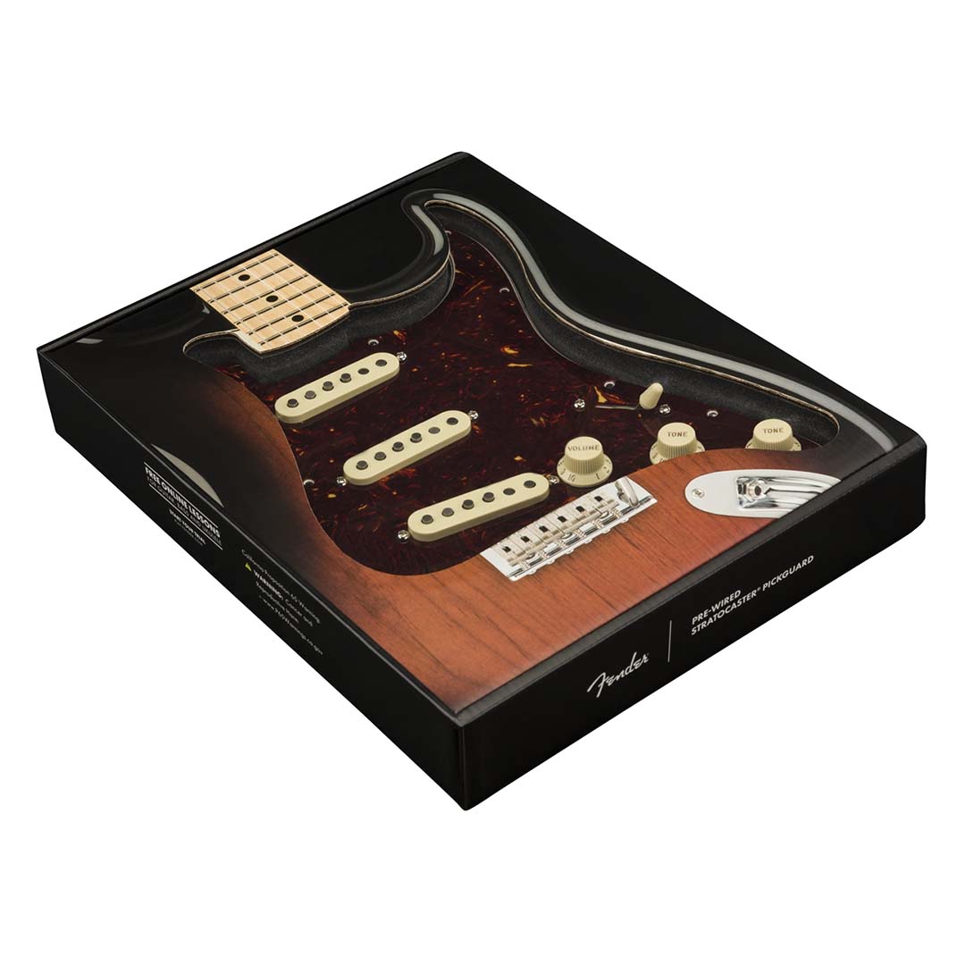 Customize your tone with the Pre-Wired Stratocaster pickguards. Made with premium components in the same factory as our iconic guitars, this drop-in pickguard is easy to install. Simply remove your old guard, solder the output jack and ground wires, screw in the new guard and you’re ready to rock with pure Fender sound.