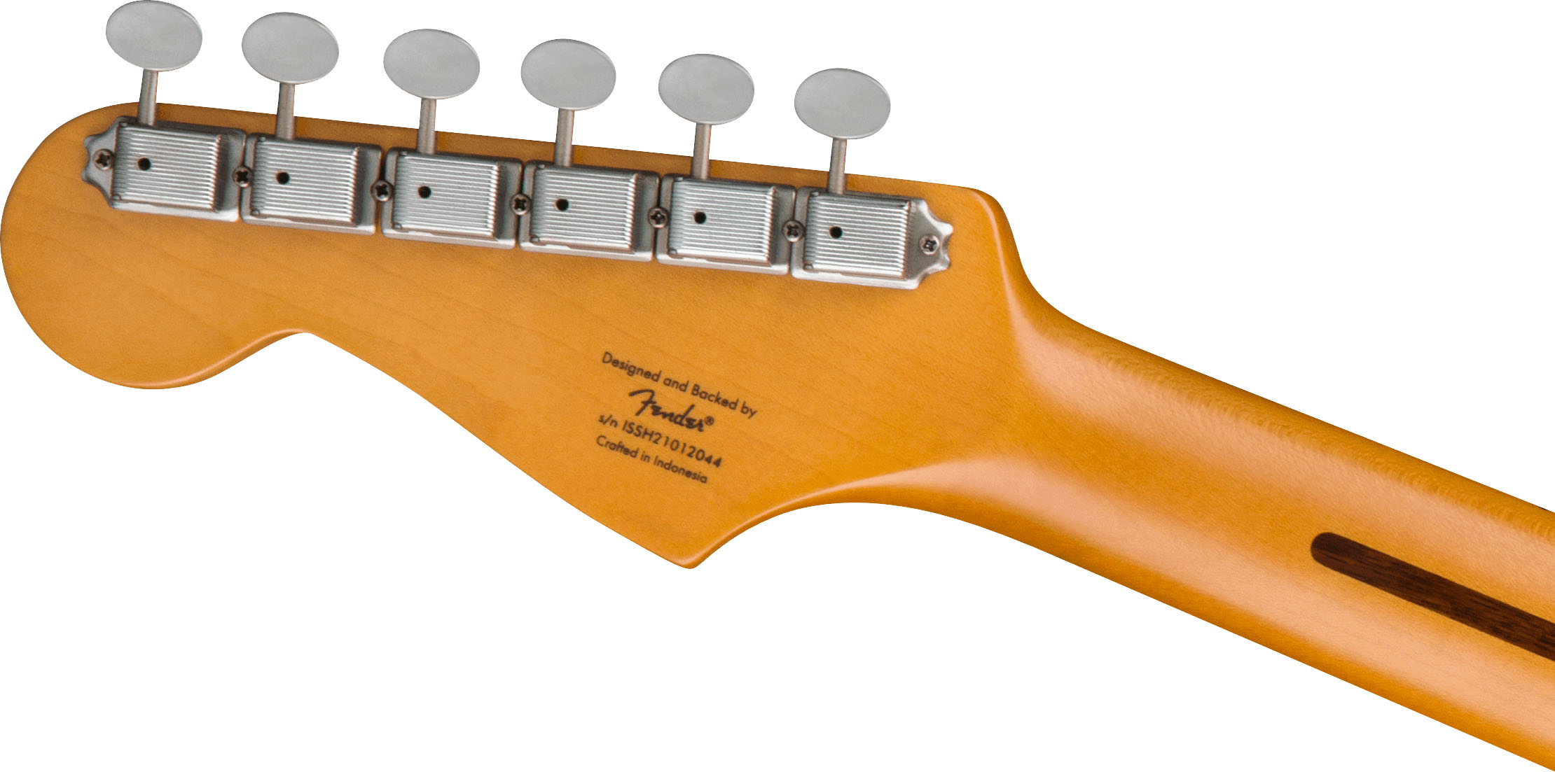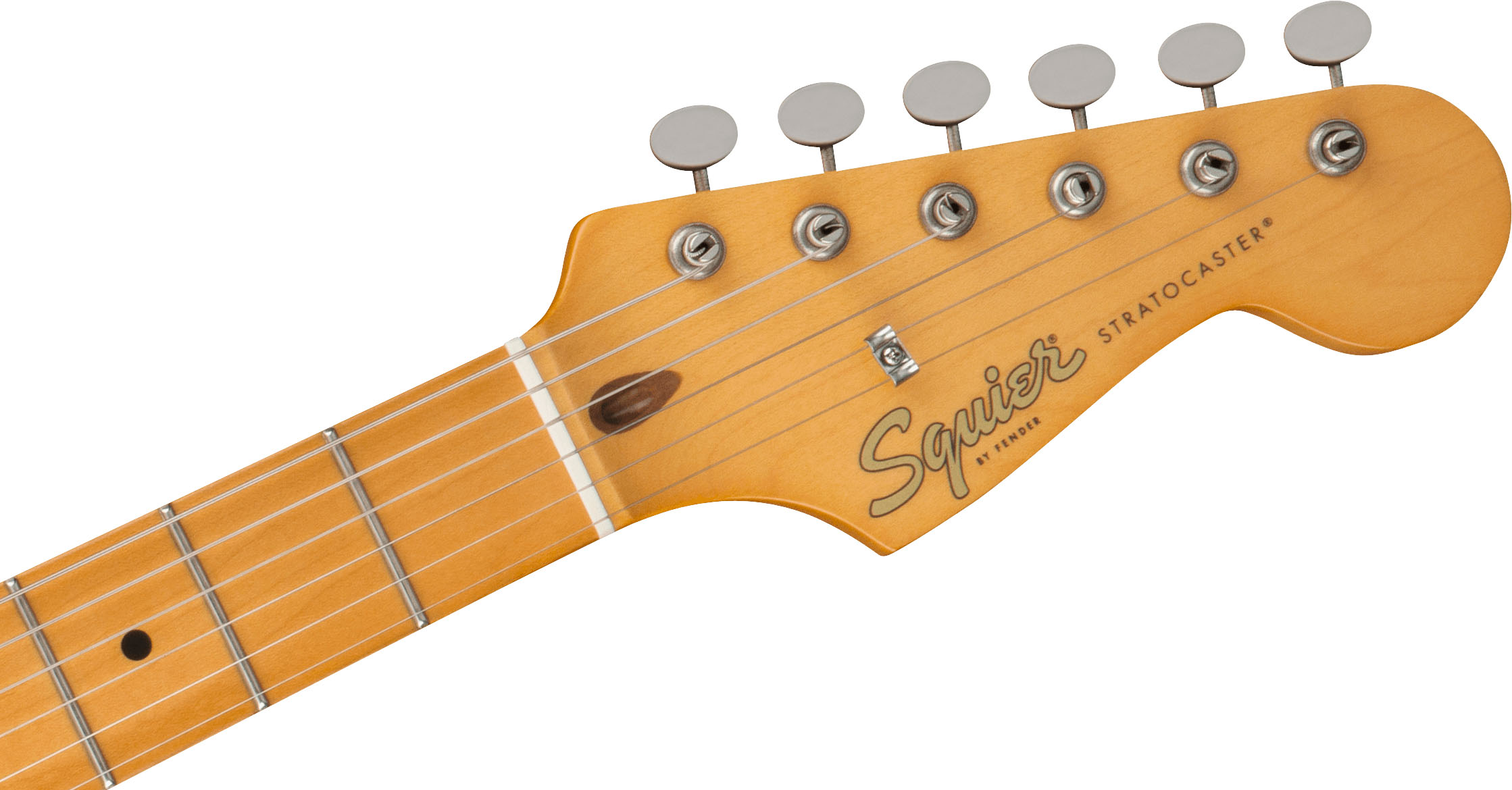 The headstock logos on this model are inspired by original Fender designs from the 1950s and ‘60s.